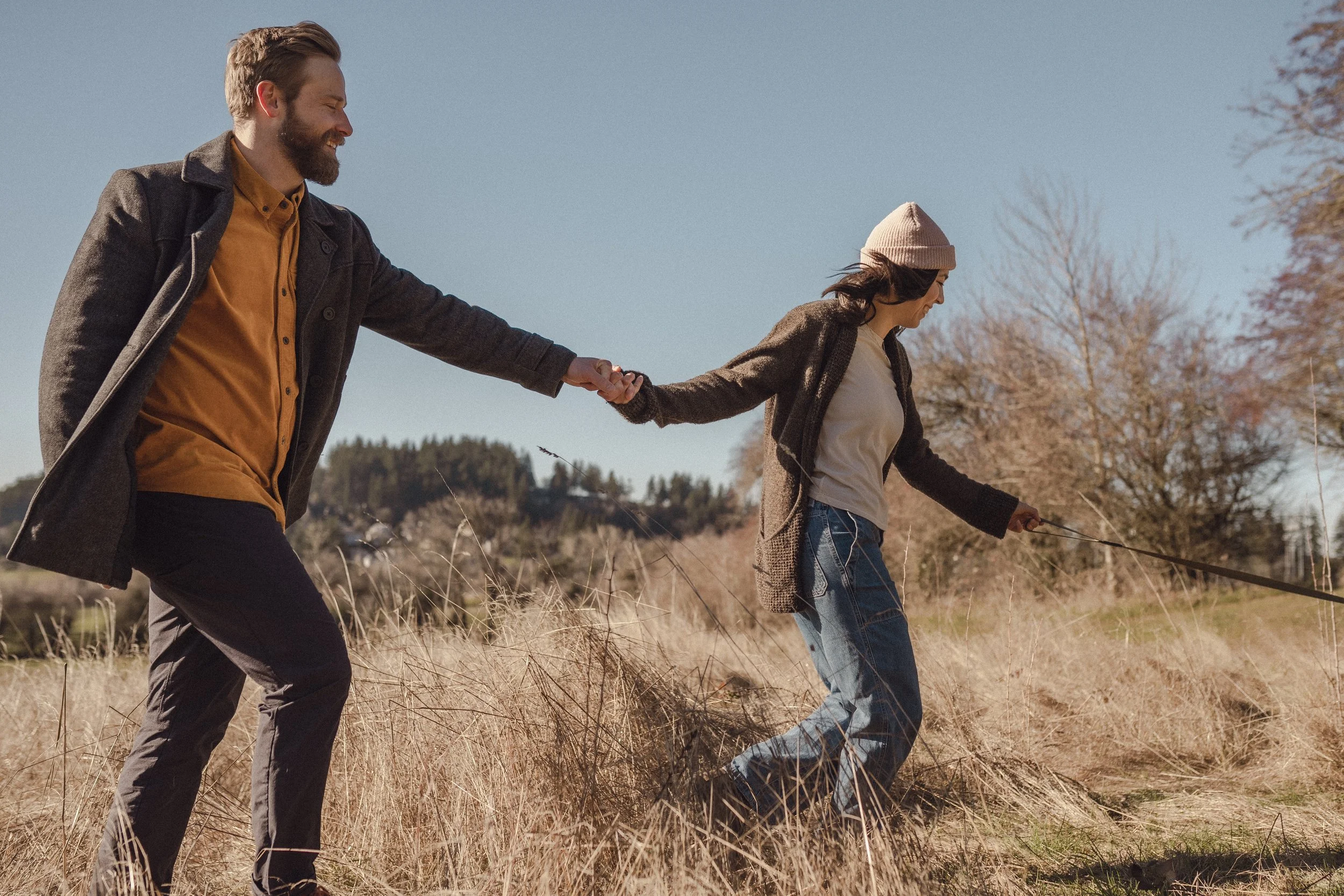 The best part of engagement shoots is basing the shoot around the couple’s personalities! I love the range of direction these sessions take me - you can dress it up and hit the town, or keep it casual in your home. Zach & Mich are big outdoorsy people, and had no photos with their two year old dog Archer, so they wanted to simply take a hike and have me get some candids on the way. The setting made them very comfortable, and the beautiful landscape of rural Oregon made it easy for me.